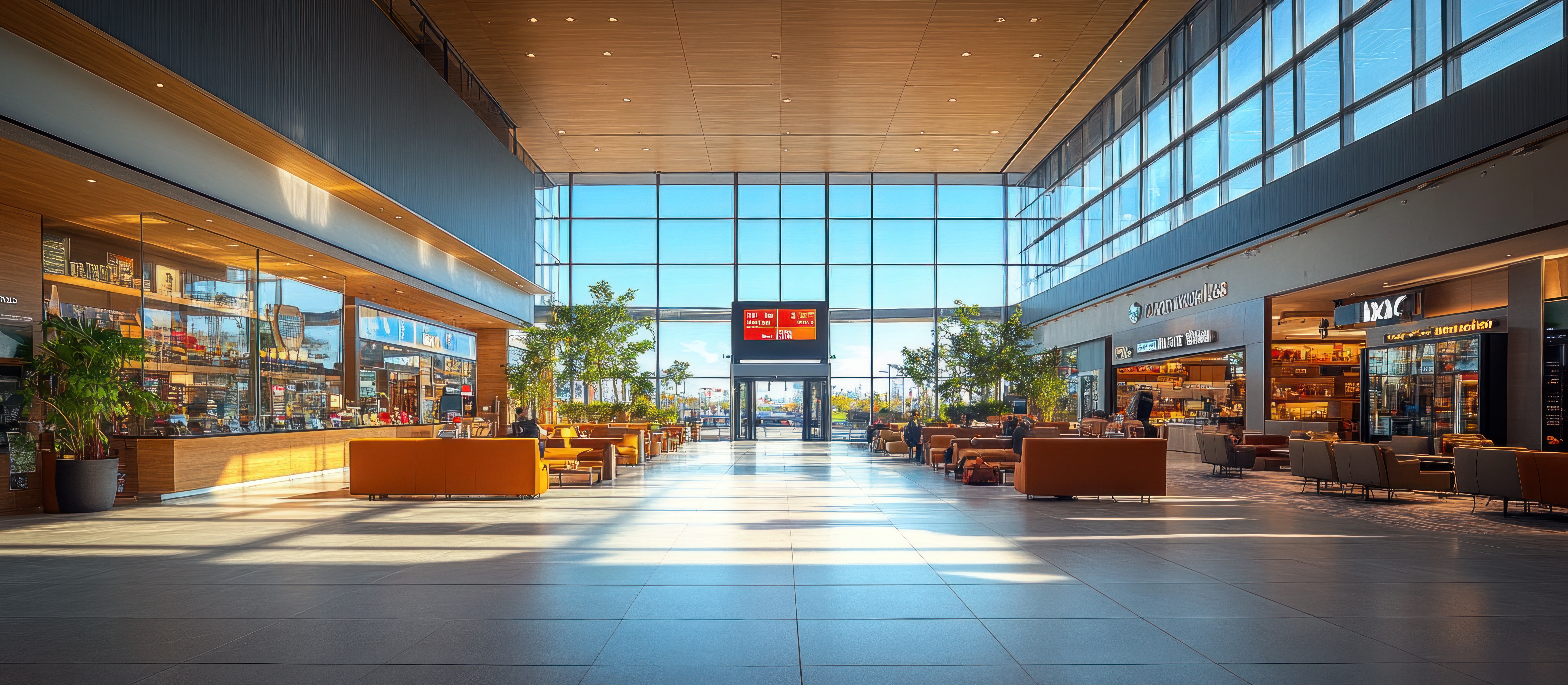 沿用「實用、耐用、美觀」三大原則,特別在高人流機場環境下選用耐磨、易清潔物料,減少維修停業風險。